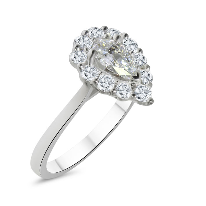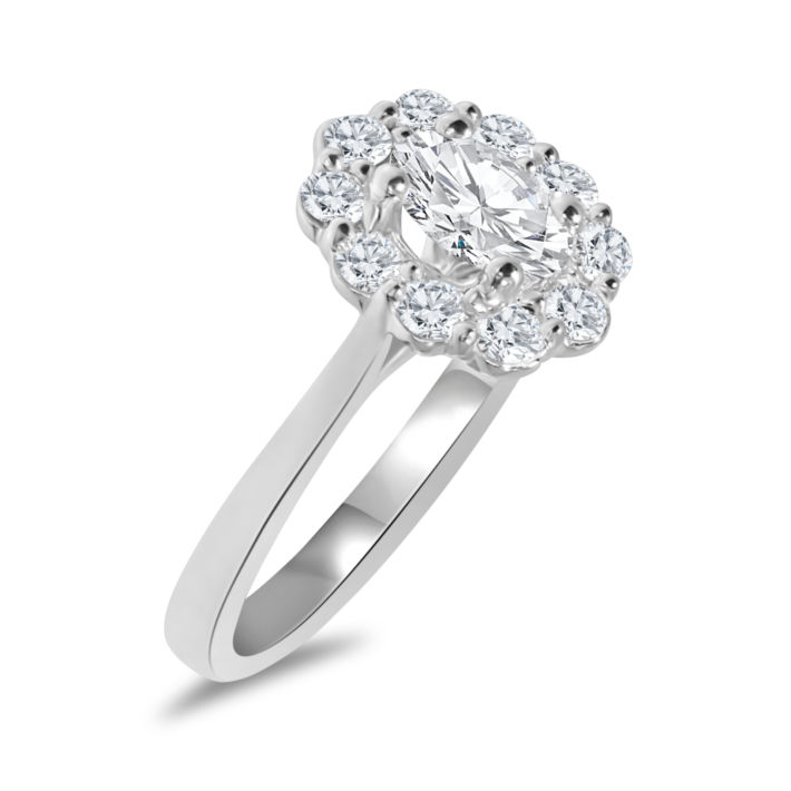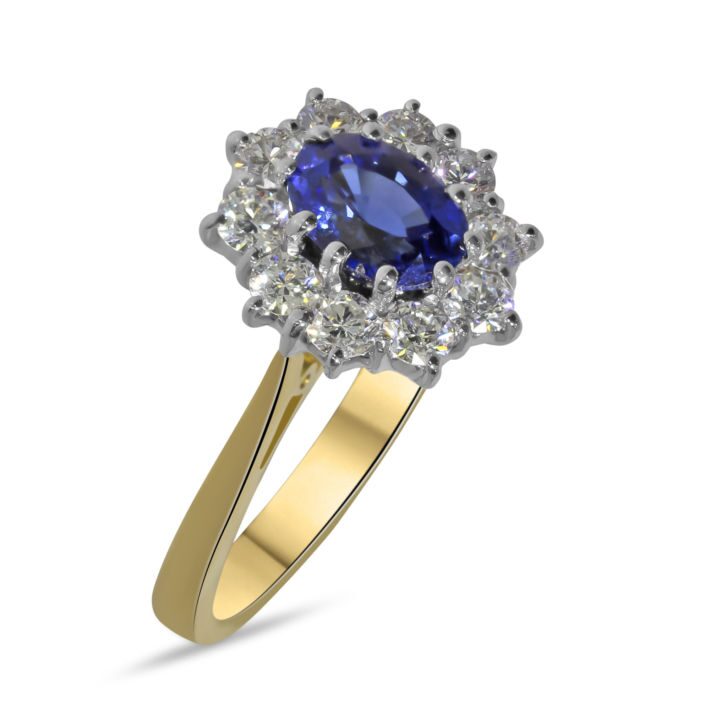 Round cut sapphire and diamond cluster ring with sapphire shoulders