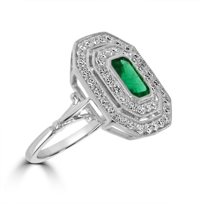Three stone yellow radiant cut with round brilliant cut diamond cluster ring