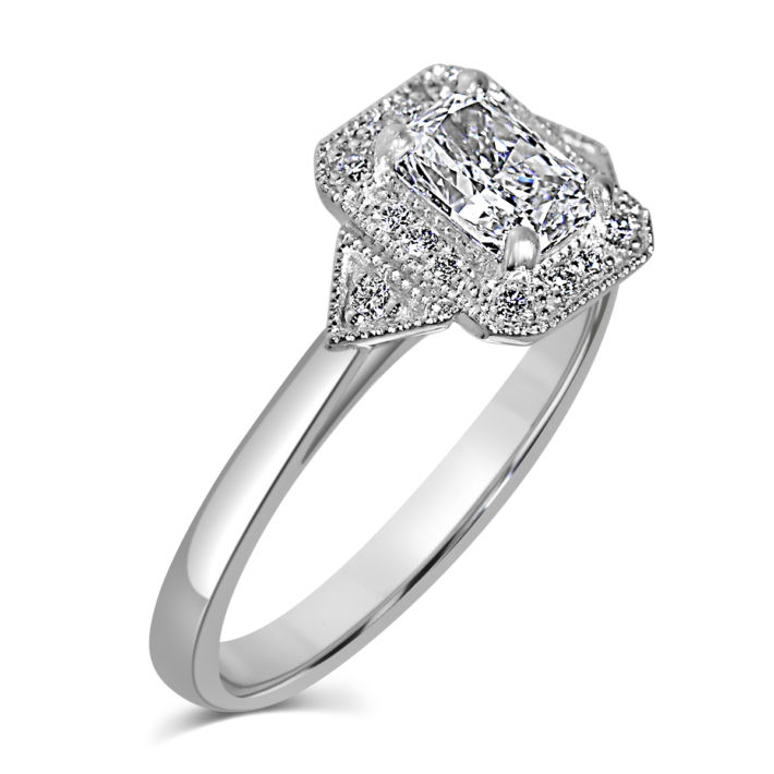 Radiant cut diamond cluster ring