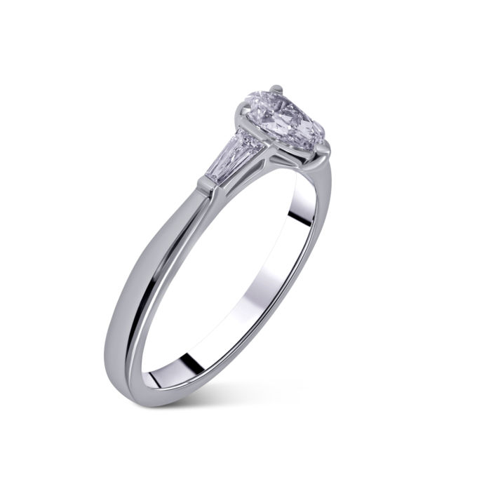 Three stone pear shape with tapering baguette diamond ring 0.55ct