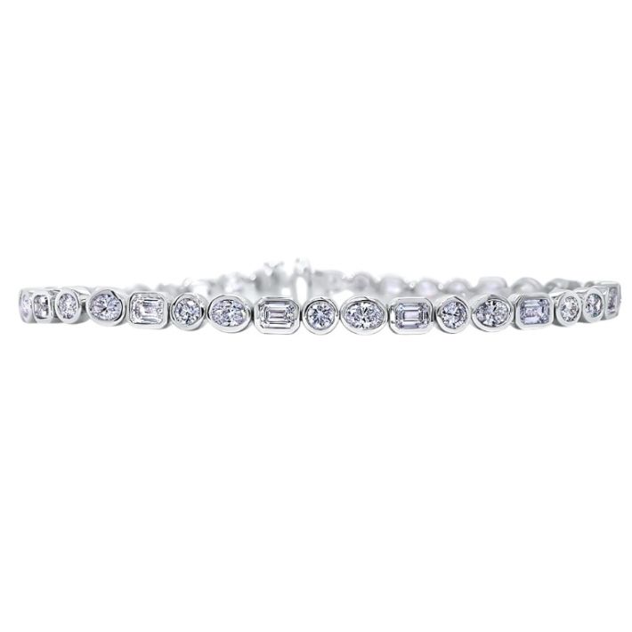 Oval cut ruby and round brilliant cut diamond line bracelet