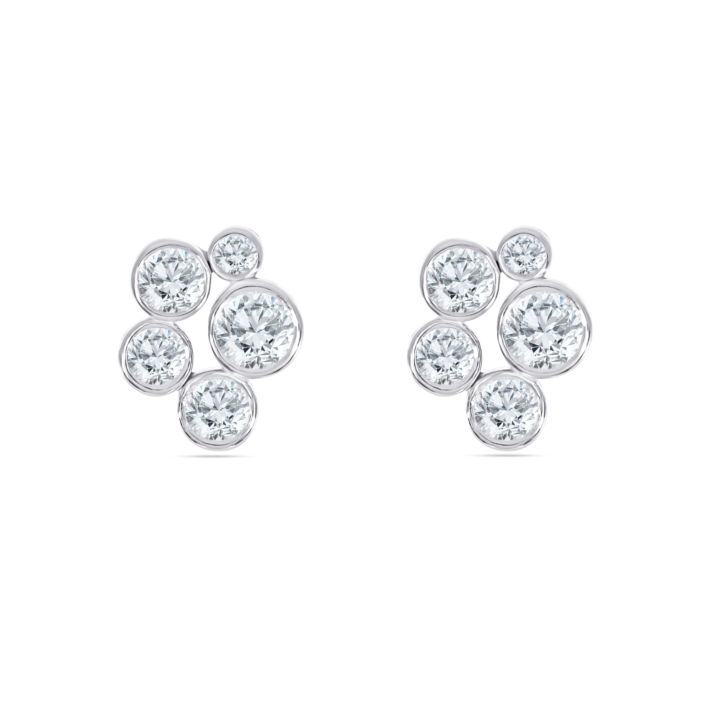 18ct white gold diamond bubble style earrings totalling 1.88ct. 10 round brilliant cut diamonds in total of various sizes. All rubbed over setting