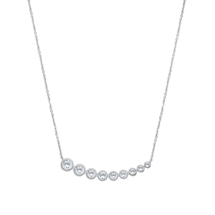 18ct white gold fine chain set to front with a curved row of 9 graduating brilliant cut diamonds approx 0.65ct total, rim set