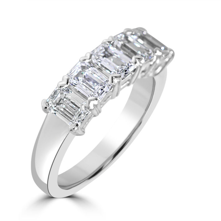 platinum 5 stone emerald cut diamond ring totalling 2.09ct. All diamonds graded by GIA as D-E Vvs2-Vs2, all claw set.