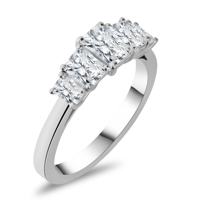 Platinum graduating 5 stone radiant cut diamond ring claw set. Total weight 1.41ct. Centre 0.52 certified by GIA as D vvs2 plus 2 totalling 0.60ct and 2 totalling 0.29ct.