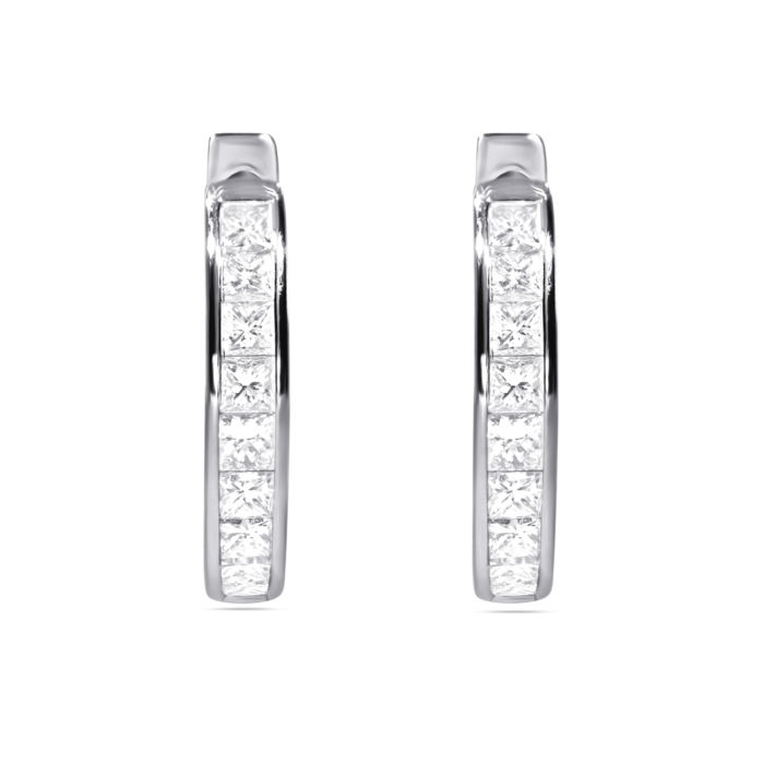 18ct white gold 9stone princess cut diamond channel set hoop earrings 0.81ct