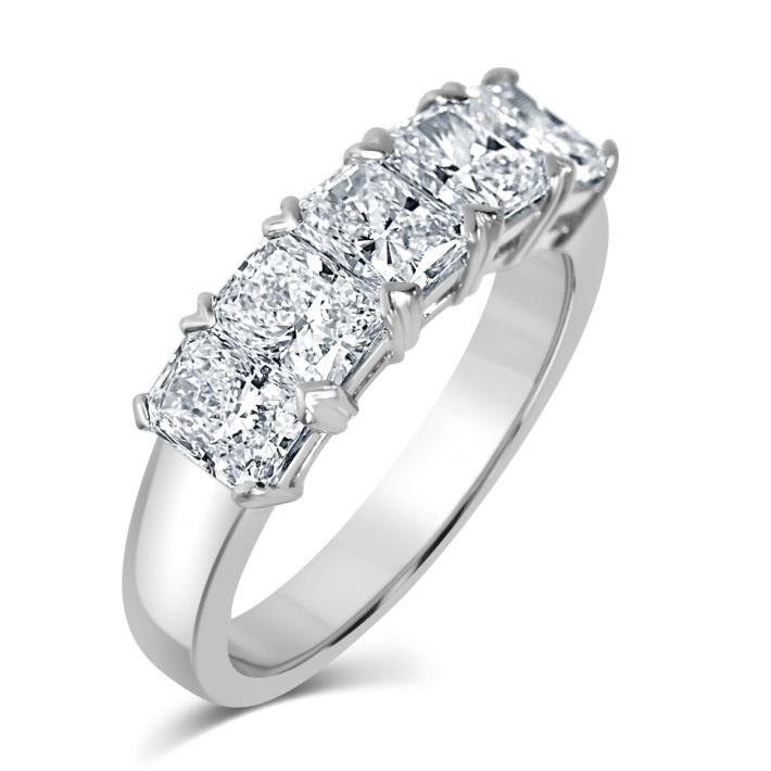 Platinum five stone radiant cut diamond ring totalling 2.11ct. All claw set.