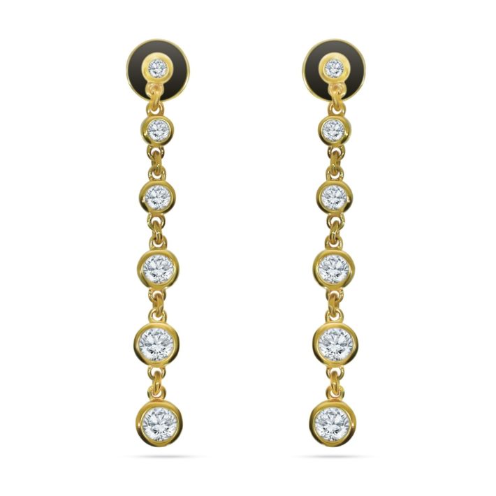 18ct yellow gold 6 stone graduating brilliant cut diamond chain drop earrings 1.02ct total all rim set
