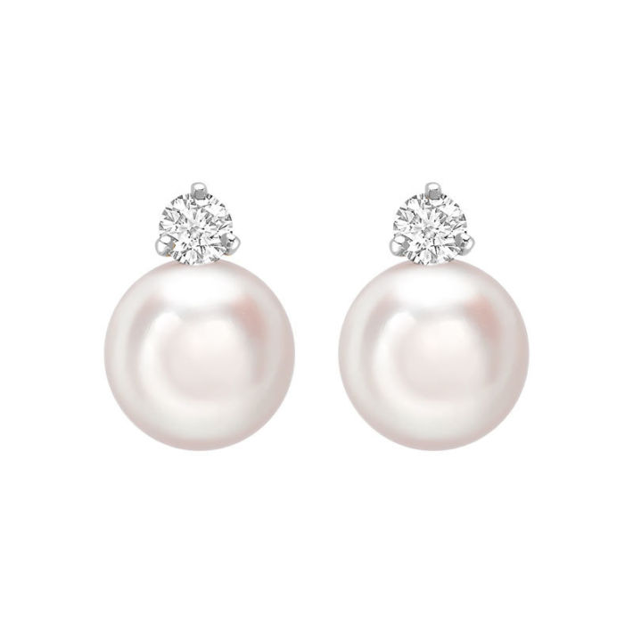 18ct white gold single 11-11.5mm south sea pearl studs with single brilliant cut diamonds totalling 0.40ct in three claw setting