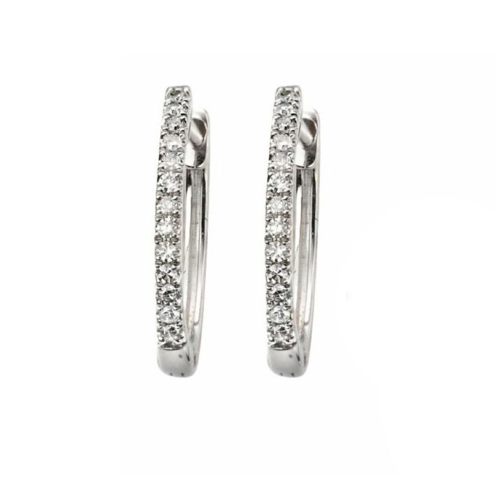 9ct white gold fine brilliant cut diamond set hoop earrings. Total diamond weight 0.10ct