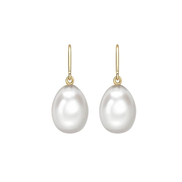 18ct yellow gold white fresh water pearl drops – hook wire fittings.